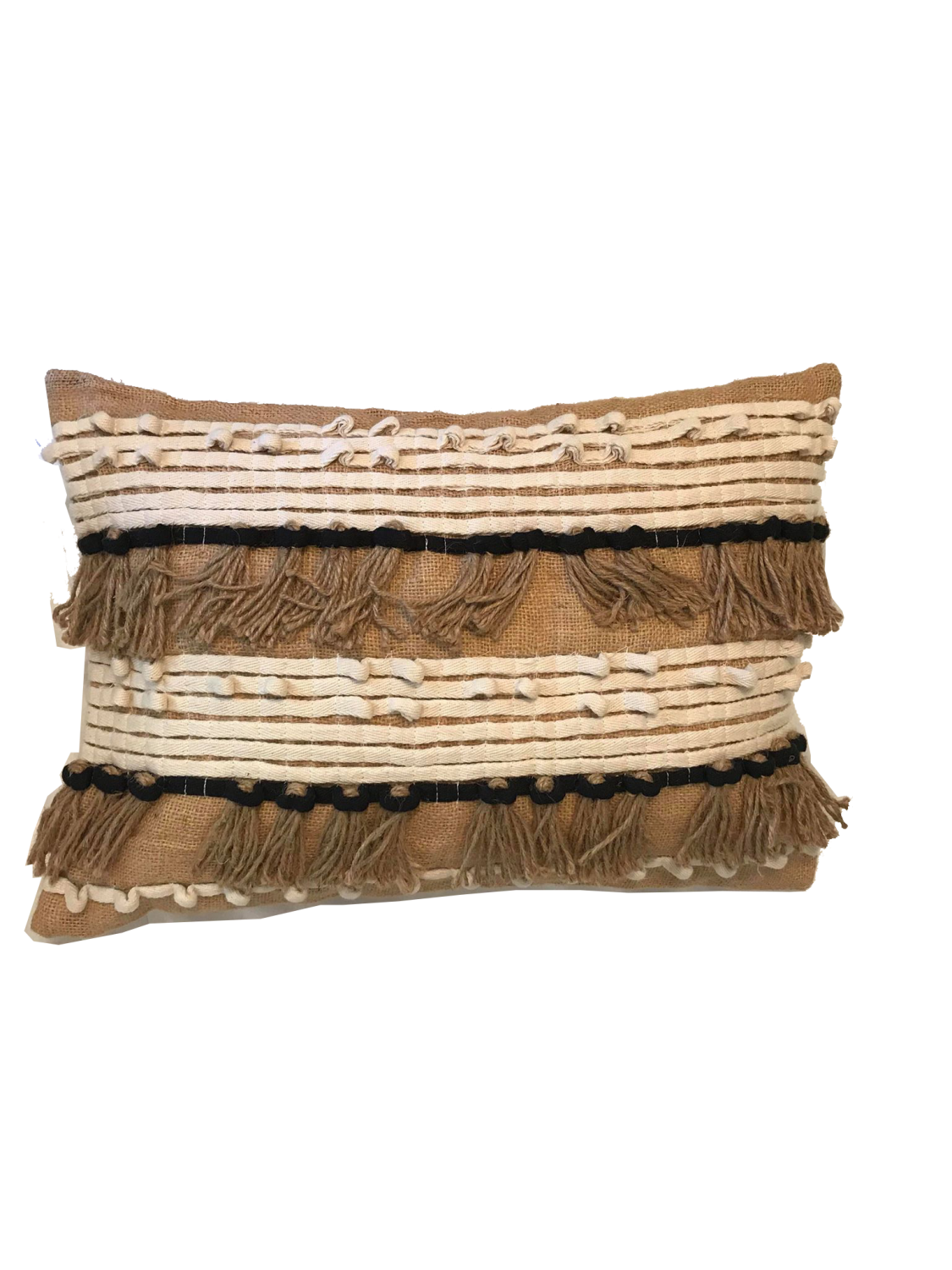 Black & Natural Burlap Tassel Pillow – Lumbar