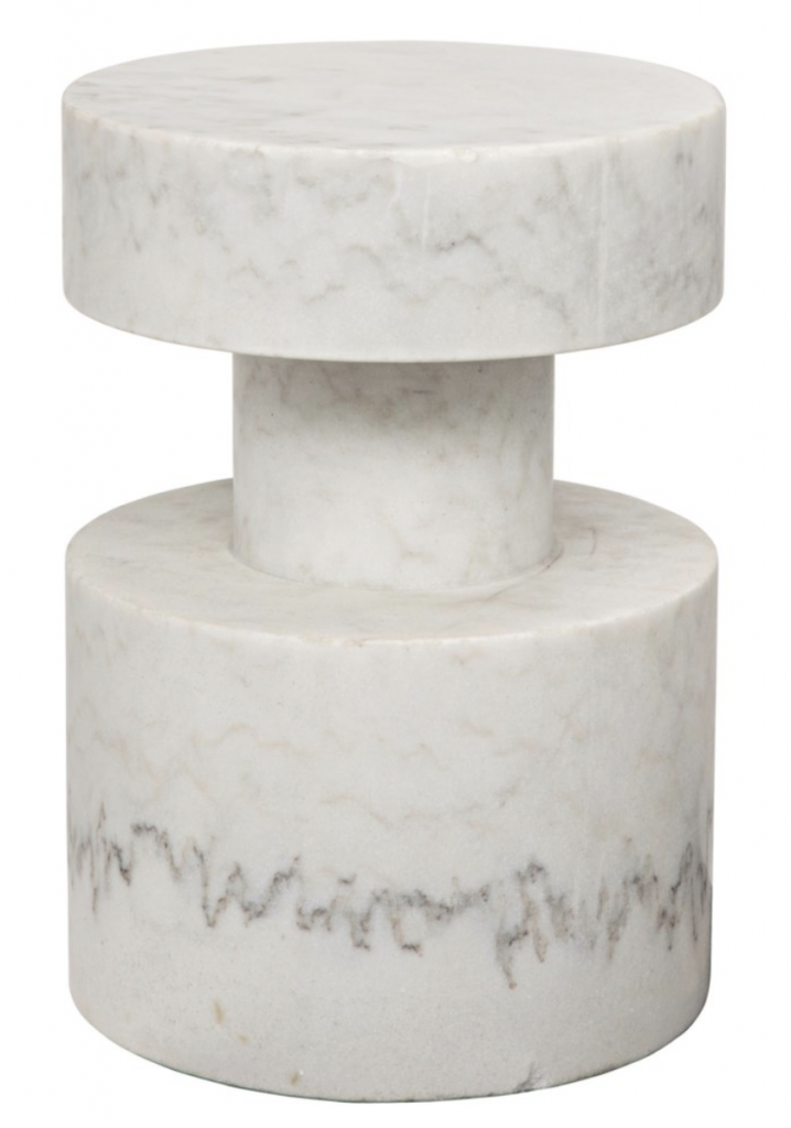 Next up are these amazing marble stools that look like they could be chess pieces. We have the light one in our shop right now. The design is simple and sublime (and substantial); this piece weighs 180 pounds! From Noir Furniture.